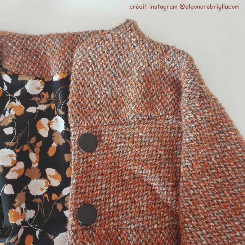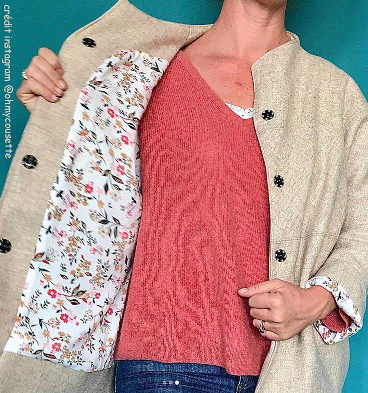 • Techniques abordées : montage de col cheminé, création de découpes horizontales, pose de doublure, finition boutonnière